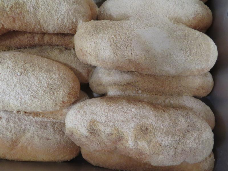 今日はきなこ揚げパンをしました。初めてのメニューだったので楽しみにしてくれている児童が多かったようです。コッペパンをさっと揚げて、1個1個のパンにきなこをつけていきます。