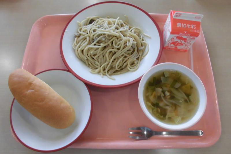 コッペパン 和風きのこスパゲッティ 野菜スープ 牛乳