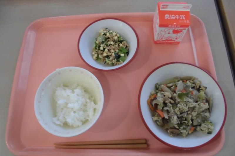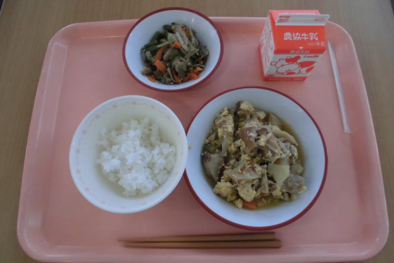 ごはん 五目きんぴら 親子煮 牛乳