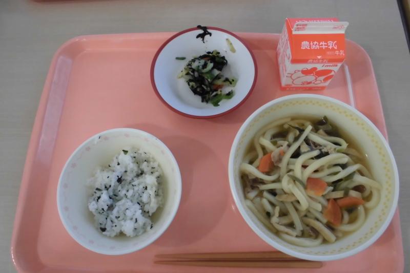 わかめごはん いそか和え きつねうどん 牛乳