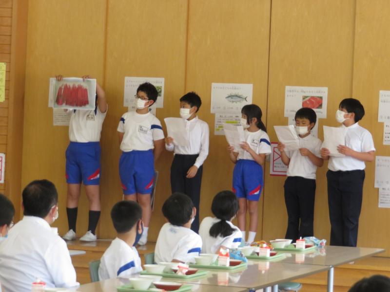 また、給食委員会で給食中のマナーや食器の片付け方についての発表をしました。一人一人がマナーやルールを守って、楽しい給食時間にしたいですね!