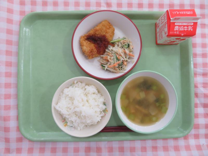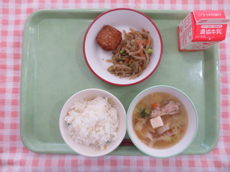 1年生の給食の準備は6年生がしてくれています。1年生は6年生の手際よく盛り付けをする姿を見ながら、静かに座って待っています。