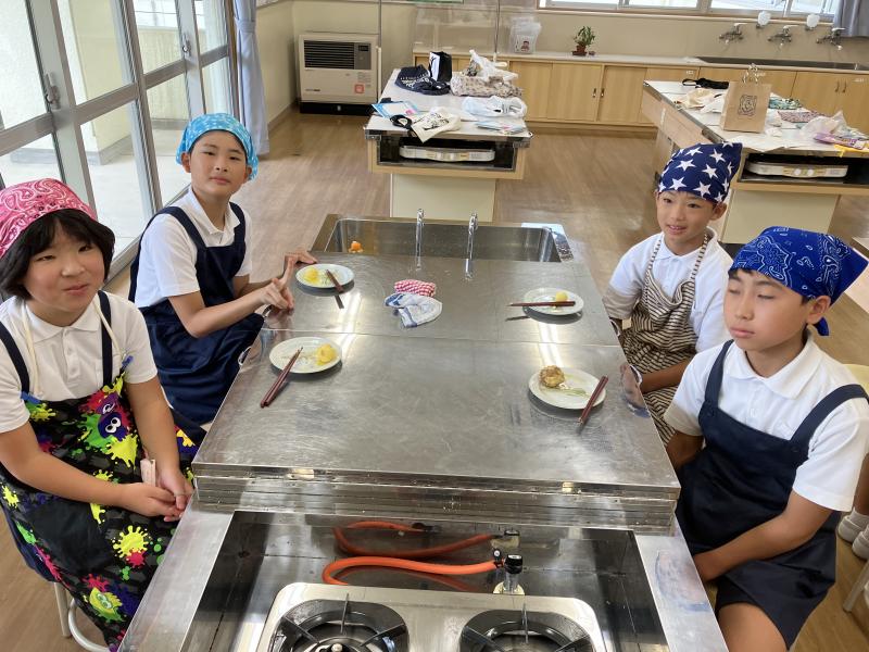 6年生の家庭科では、簡単な料理が作られるように調理実習を行います。グループで協力しながら準備・調理・後片付けまでしっかりしました。お味のほうは・・・?