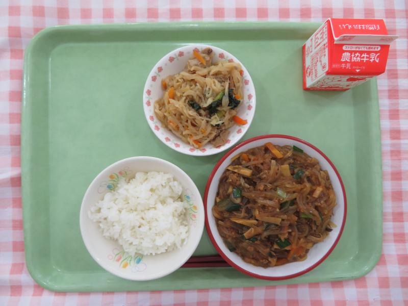 ごはん ひじきのマリネ すき焼き風煮 牛乳