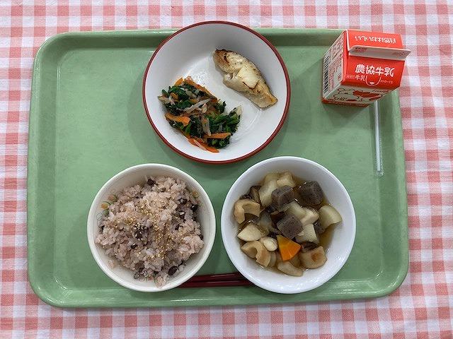 五目ごはんは、しょうゆとこんぶをいっしょに入れて炊き、釜で作った具を混ぜ込みました。いつもよりたくさんできましたが、たくさんおかわりしてくれました。おいしかったです!
