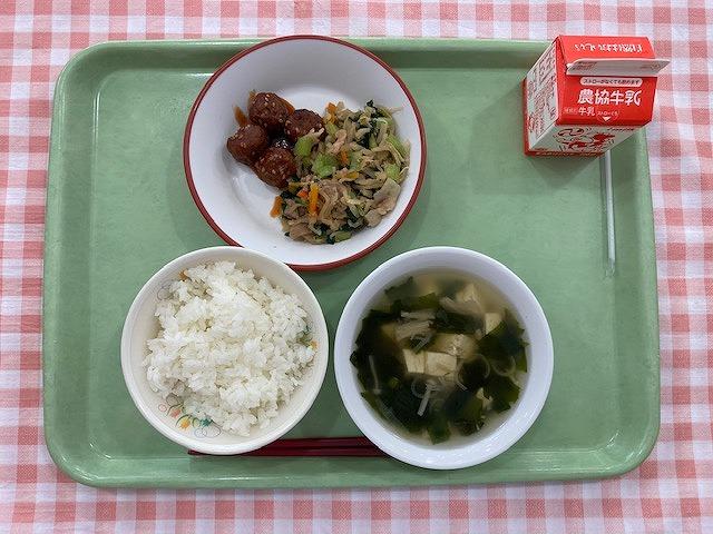 わかめごはん 油淋鶏 さわやか和え 大根のみそ汁 牛乳
