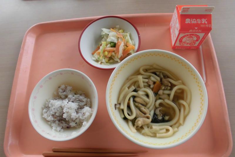 うめごはん コールスローサラダ 五目うどん 牛乳
