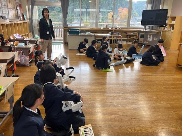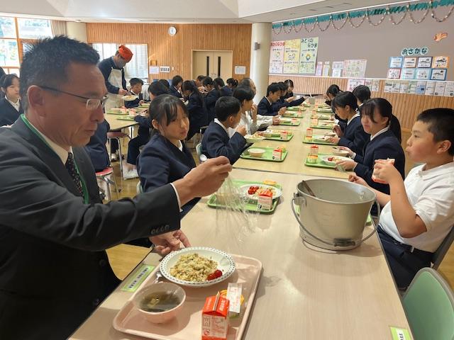 今日は、中学校の校長先生が来校され、6年生と一緒に給食を食べていました(^^♪