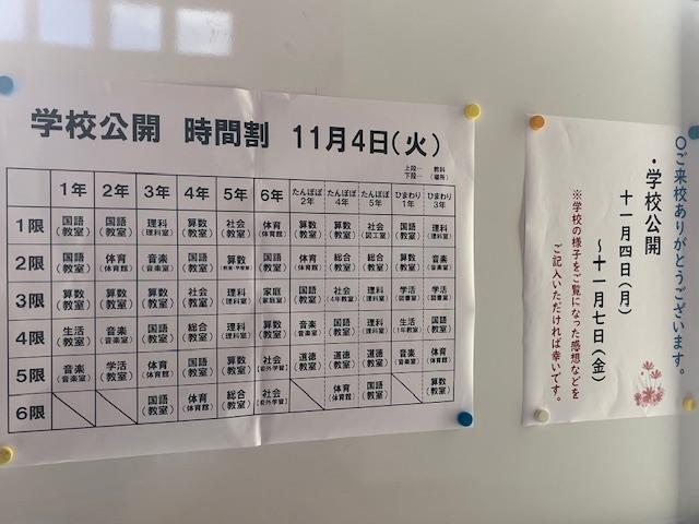 授業参観とは違い、いつでも授業のようすをご覧いただけます。児童玄関に入ると、その日の授業が掲示されています。