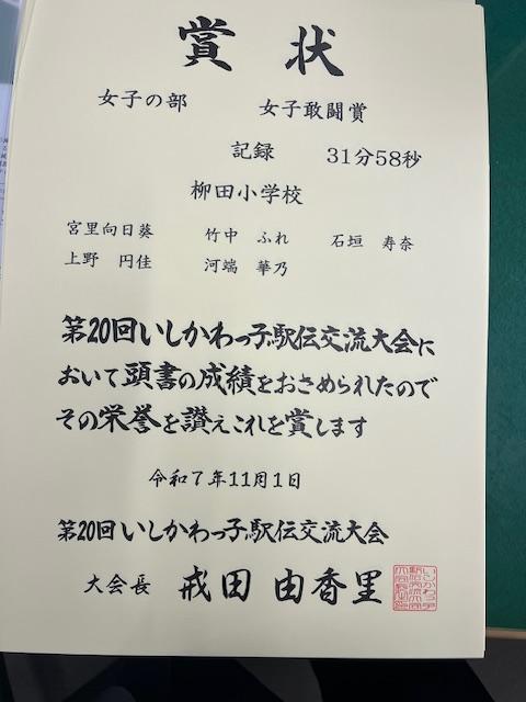 11月1日に西部緑地公園周回コースで行われたいしかわっ子駅伝交流大会。荒天を心配していましたが、無事に開催されました。