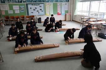 1年生は音楽の時間に、箏を習っています。箏の音色を聞くと正月を思い出してしまうのは、私だけでしょうか。