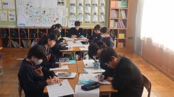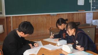 They are studying English words for spelling contest in Noto town. They are going to take a test of it next Tuesday.