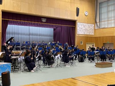 2月5日、吹奏楽部が「ウインターコンサート2023」に出演しました。能都中学校の体育館を会場に、能登町で吹奏楽に取り組む皆さんが一堂に会して「エル・クンバンチェロ」や「となりのトトロ」など全8曲を演奏しました。本校吹奏楽部員もこれまでの練習の甲斐あって、それぞれの役割を十分に果たすことができました。ソロパートを任される場面も随所にあり、盛んな拍手を浴びていました。お越しいただいた皆さん、ありがとうございました。