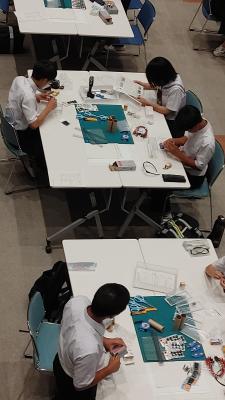 7月30日,中能登町ラピア鹿島でサイエンスチャレンジがあり,2年生2組(1組3名)が参加しました。今年度は,事前の配布資料がなく,当日発表された「モータと自作のプロペラを用いて紙管を転がし,その移動距離を競う」という課題で競技を行いました。柳田中学校は,Bチームが金賞,Aチームが銀賞という結果でした。2チームとも大変がんばりました。