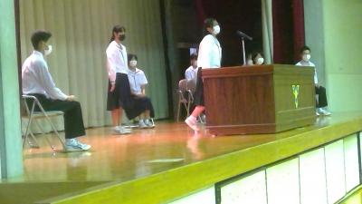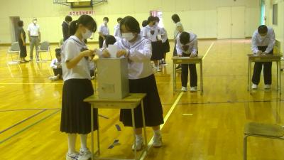 9月22日、後期生徒会の役員選挙がおこなわれました。選挙に先立って候補者本人と応援弁士による演説会があり、それぞれの思いを全校生徒の前で訴えました。