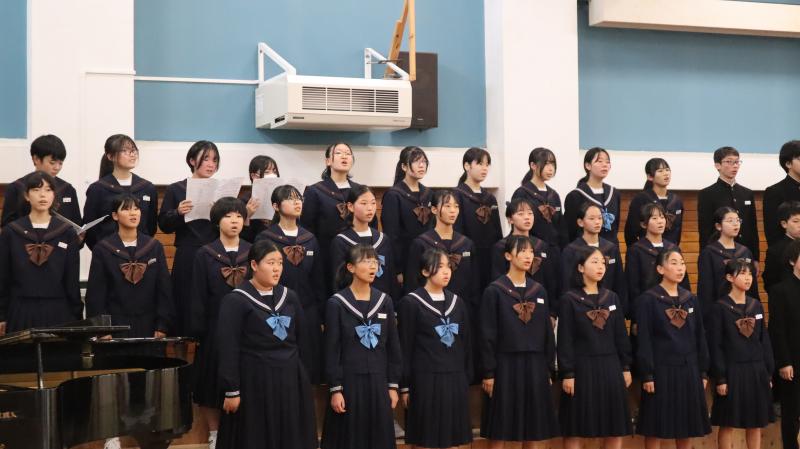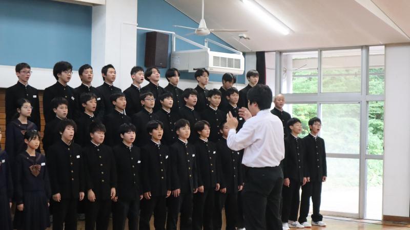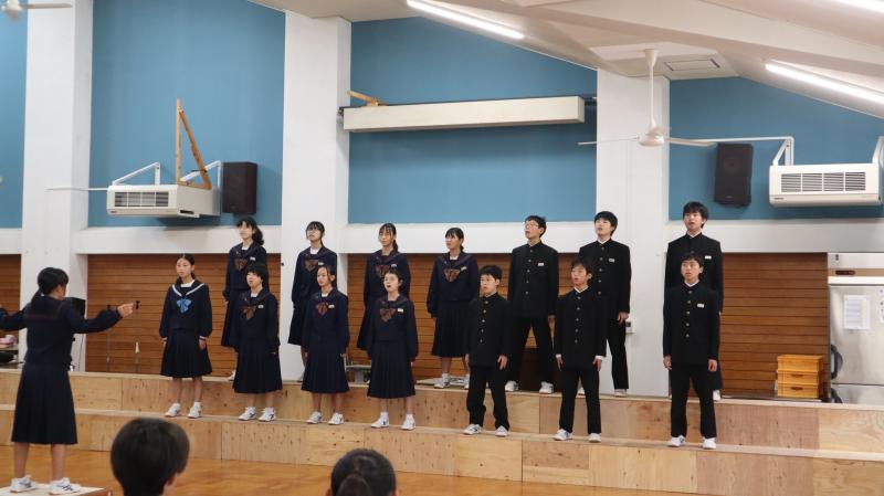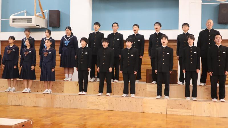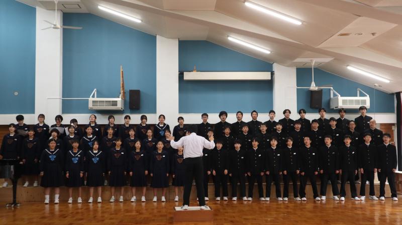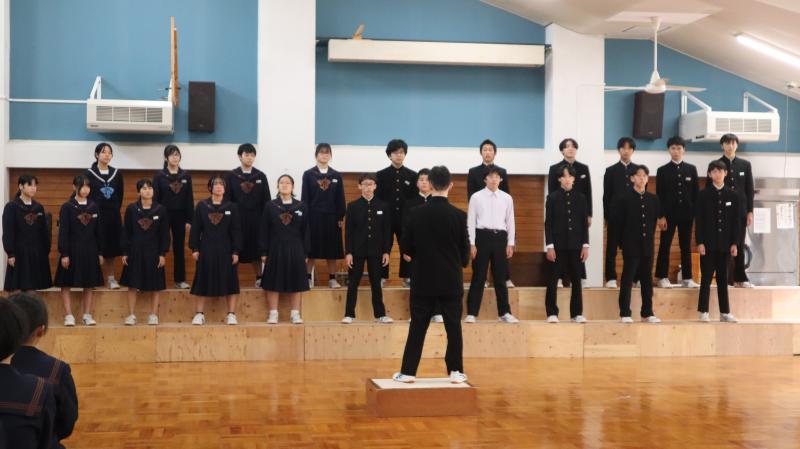 11月2日の文化祭に向けて、24日に合唱中間発表を行いました。震災により体育館が使用できないためランチルームで行いました。本番は柳田小学校体育館を借りて行います。それに、今年は輪島市立東陽中学校と合同で開催します。みなさん文化祭を見に来てください。お願いします。