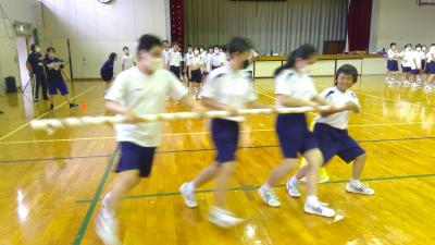 9月1日、体育祭本番が迫ってきました。この日はよさこいの練習に加えて各競技の練習も行いました。雨模様のため体育館での活動となりましたが、各団とも3年生を中心に作戦を立てて入念な練習を繰り返し、勝利への強い執念を見せていました。