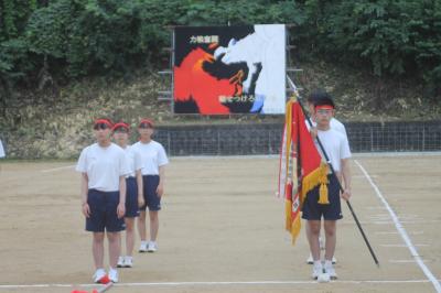 9月4日、「力戦奮闘 魅せつけろ紅白魂」(2年生田尻さん考案)というスローガンの下、体育祭が開催されました。3種目終了時点で雨が激しくなり、応援合戦を急遽体育館でおこないました。突然の変更でしたが、紅団・白団とも、練習の成果を十分に発揮し、迫力ある演舞を披露し、参観の皆さんを魅了しました。