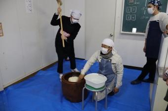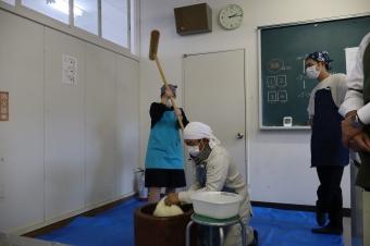 PTA給食部会が主催して、3年生と餅つきをしました。「粘り強く、受験勉強に取組んでほしい」という保護者の願いから行いました。はじめて餅つきをする生徒がほとんどで、とても貴重な体験になりました。ついた餅は2年生、1年生にも食べてもらいました。つきたての餅はとても美味しかったです。