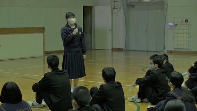 4月14日、道徳集会が開かれました。「Challenge、Change、Cheer」という心構えや道徳の時間の進め方などを確認したあと、生徒会執行部が作った動画をもとに、班ごとで意見を交換しました。