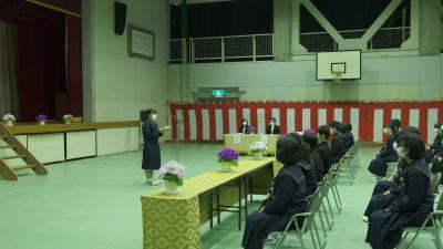 4月5日の午後、入学式をおこない21人の新入生を迎えました。式では担任の呼名に対して、1年生らしい元気のいい返事で応じていました。入学式後には、1学期の始業式がありました。今日から全校生徒56人で新年度がスタートします。「折れない心を育む ~Get resilience~」をスローガンに、生徒・職員共に成長していきたいと思います。本校の教育活動に、ご理解とご協力をよろしくお願いいたします。