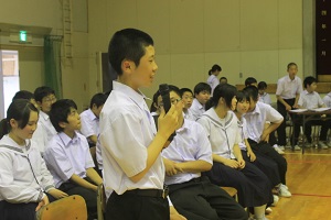 They are studying English words for spelling contest in Noto town. They are going to take a test of it next Tuesday. Today 1st and 2nd-year students studied together! They enjoyed checking words. 来週の23日(火)に能登町スペリングコンテストがあります。それに向けて1,2年生が合同で、縦割り班ごとに勉強しました。みんなで合格だ。