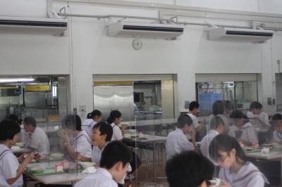 7月13日からランチルームの空調設備が稼働を開始しました。約3週間の工事を経て、この度使用許可が下りたものです。昨年度までは暑い中、我慢の給食でしたが、今日は快適な時間を過ごすことができました。この工事に関わってくださった皆さんに心より感謝申し上げます。なおランチルームは給食時だけでなく、全校生徒対象の学習会や講演会、PTA行事などに有効活用させていただく予定です。