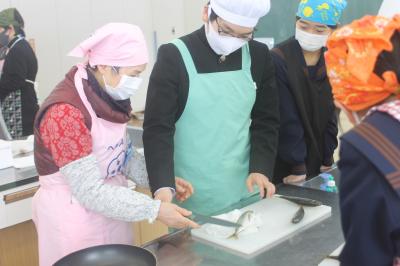 1月18日、海洋教育の一環として、2年生が「魚の調理体験」をしました。能登町食生活改善推進員の皆さんの指導の下、アジをさばいて南蛮漬けを作りました。慣れない手つきの2年生でしたが見事完成しました。給食の時間に2年生みんなでおいしくいただきました。