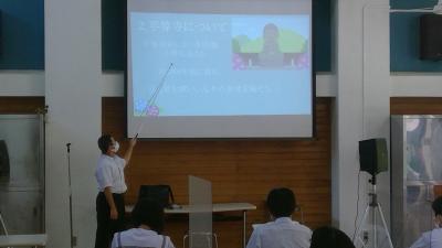 6月23日、2年生がこれまで調べてきた「柳田研究」の成果を、1年生に向けて発表しました。テーマは、「あじさい寺」「宝暦杉」等、5つでした。現地に赴いて調べた結果を堂々と発表していました。1年生も熱心に聞いて感想を発表していました。本校ではこのような学習を通じて協力して学習する力や表現する力を伸ばし、故郷を深く理解するきっかけとしています。