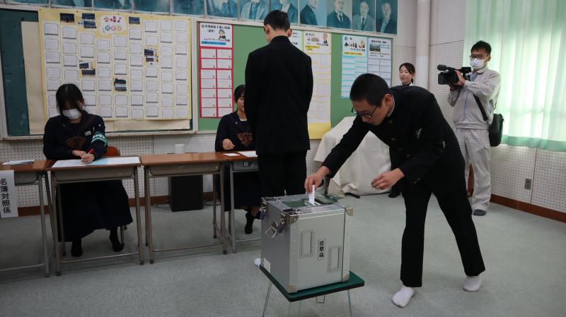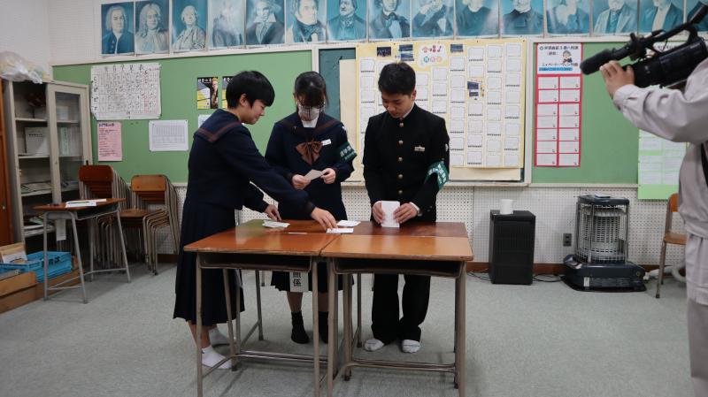 実際の選挙と同じ手続きを行い投票しました。その後、開票作業も体験しました。貴重なお話・体験をすることができ、とても良かったです。早い生徒で3年後に選挙があれば実際に投票することになります。ぜひ、政治に関心をもち、選挙があるときは、投票してくれることを願っています。特に若い人の1票がとても大事ですね。