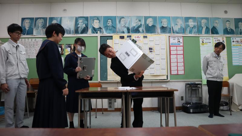 能登町選挙管理委員会と能登町総務課の皆様をお迎えして、主権者教育が3年生を対象に行われました。