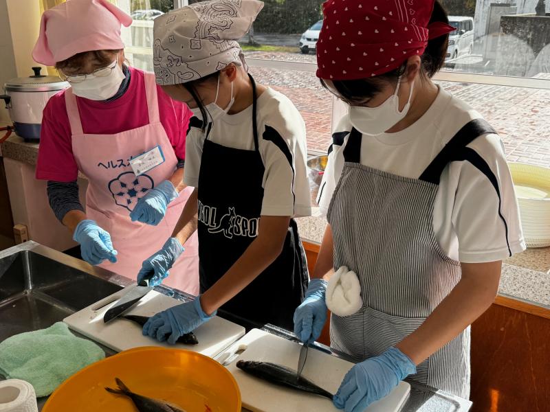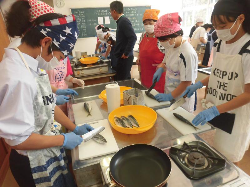食生活改善推進員6名の方を講師に1年生がお魚調理体験を行いました。