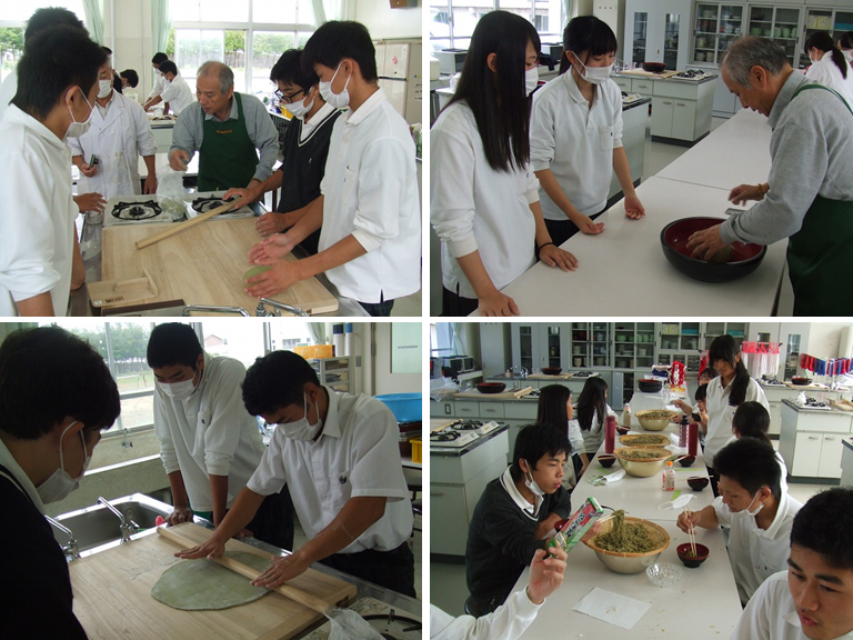 【津幡高校】桑の葉そば打ち体験を行いました。