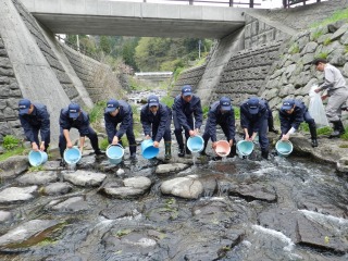 【4月】ヤマメの放流体験 水産コース2年 能登町「春欄の里」(能都ロータリークラブ協力)