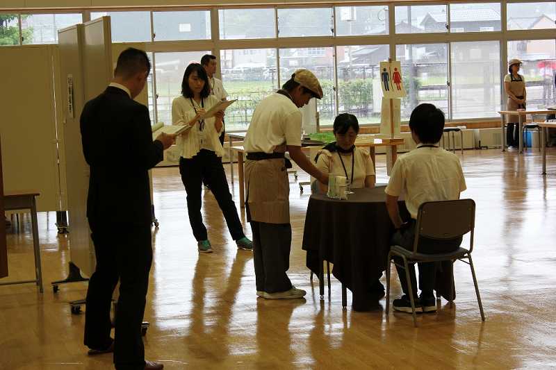 審査員として、石川県ビルメンテナンス協会から清掃部門に6名、石川県旅館ホテル生活衛生同業組合から接客部門に3名の合計9名の方にご協力をいただきました。当日は、県下特別支援学校5校2分校から合計83人の生徒が技能検定に挑みました。